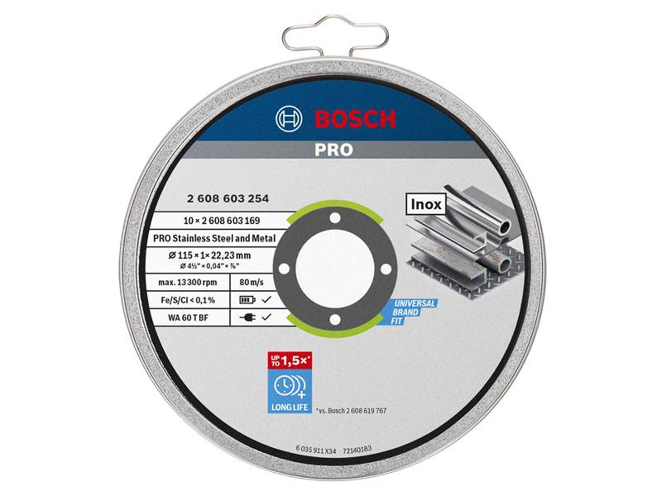 Bosch Powertool Accessories Pro Stainless Steel And Metal Bonded Cutting Disc 115 X 1.0 X 22.23Mm