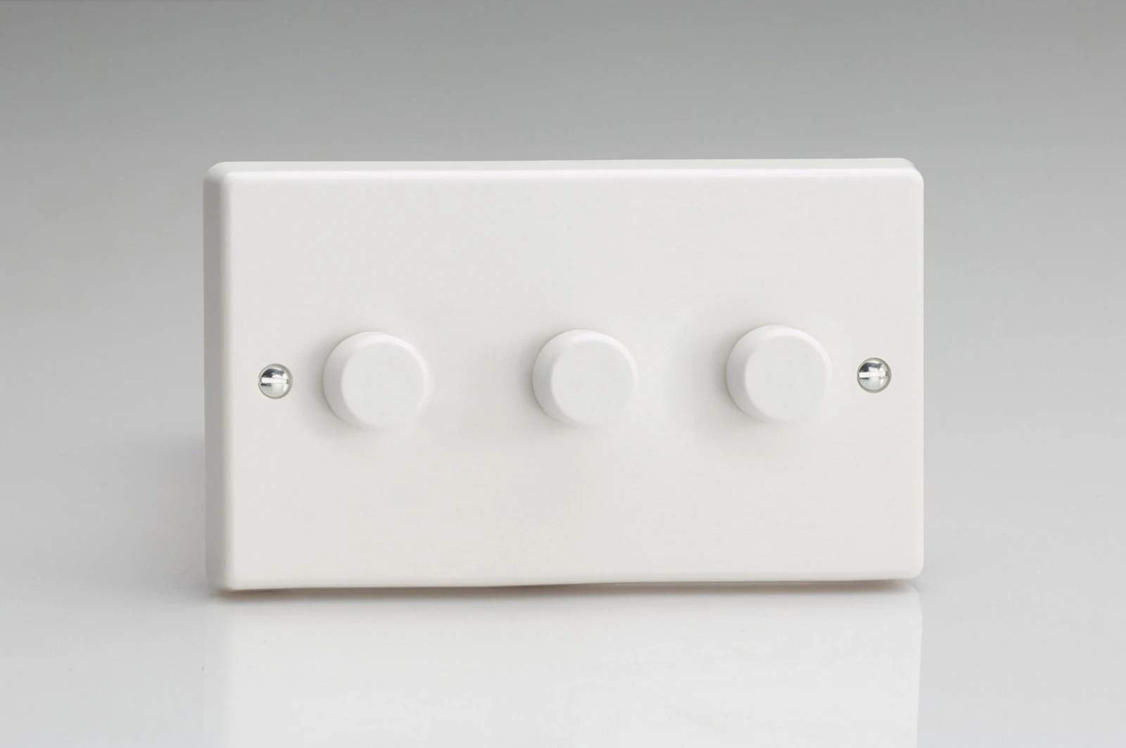 Varilight DIMMER 3G 2W PUSH 180W 3-Gang 2-Way Push-On/Off Rotary LED Dimmer 3 x 15-180W (max 20 LEDs) (Twin Plate)