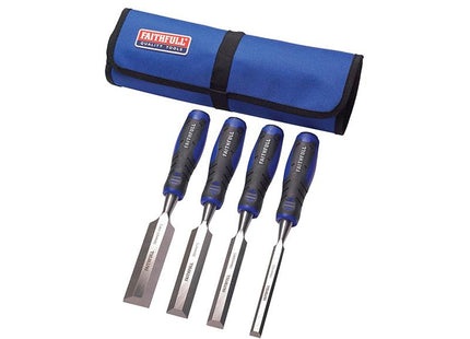 Faithfull Soft Grip Chisel Set + Chisel Roll, 4 Piece