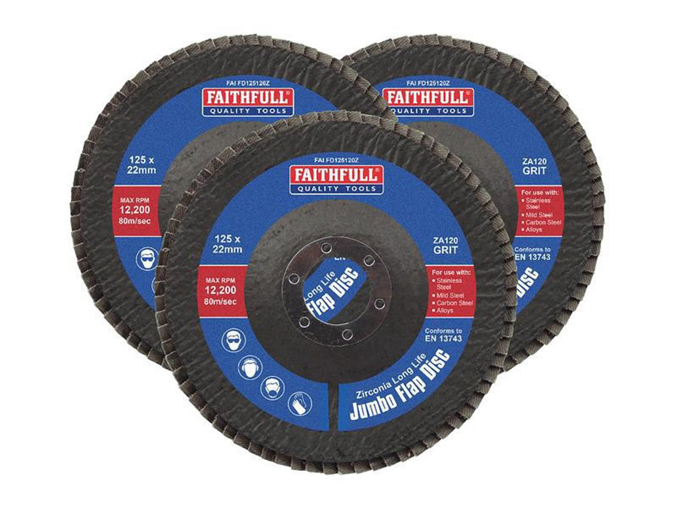 Faithfull Zirconia Abrasive Jumbo Flap Disc 125 X 22Mm 120 Grit (3 Pack)