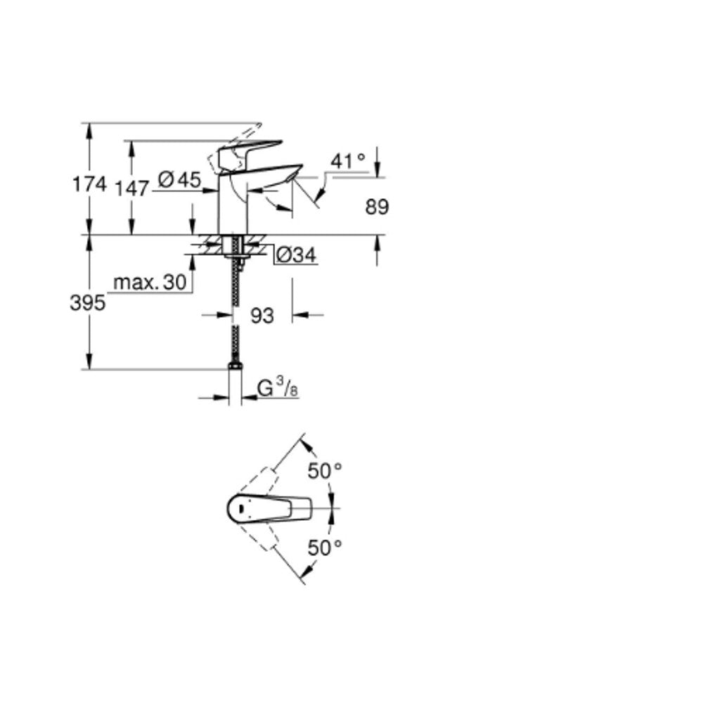 Grohe 2020 Mono Basin Mixer Smooth Body Chrome - 23330001