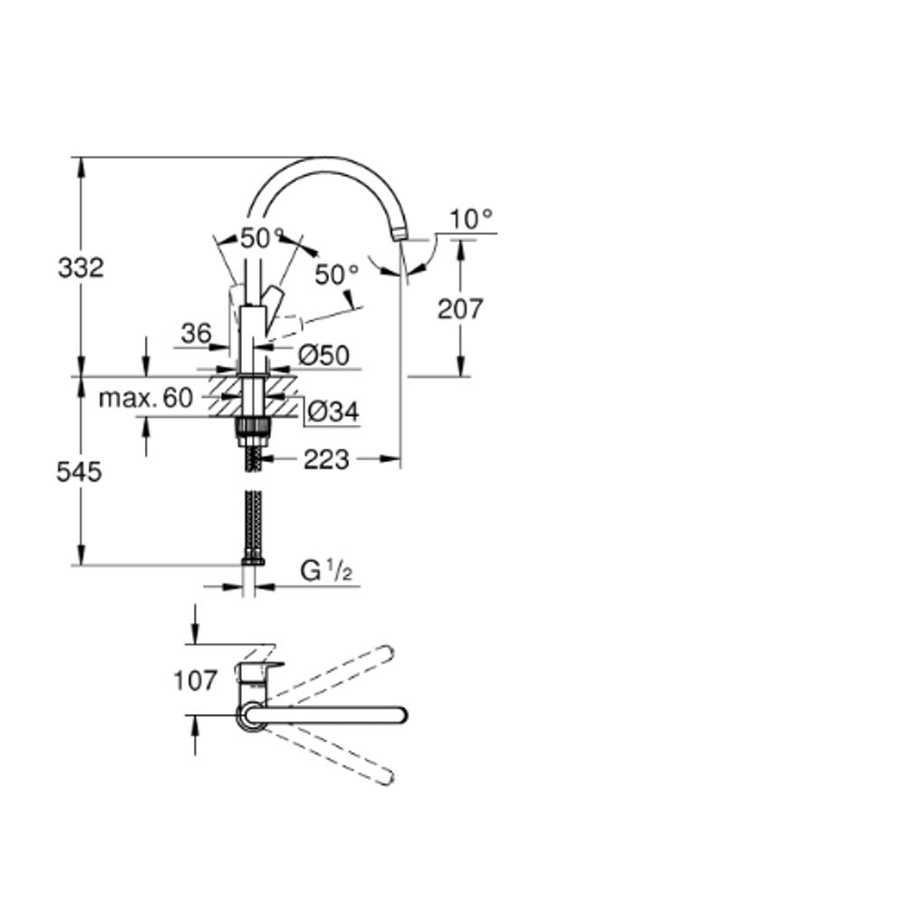 Grohe Bauedge Kitchen Sink Mixer Chrome - 31233001 - Ideal for Modern Kitchens
