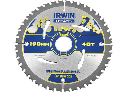 IRWIN Weldtec Circular Saw Blade 190 X 30Mm X 40T Atb