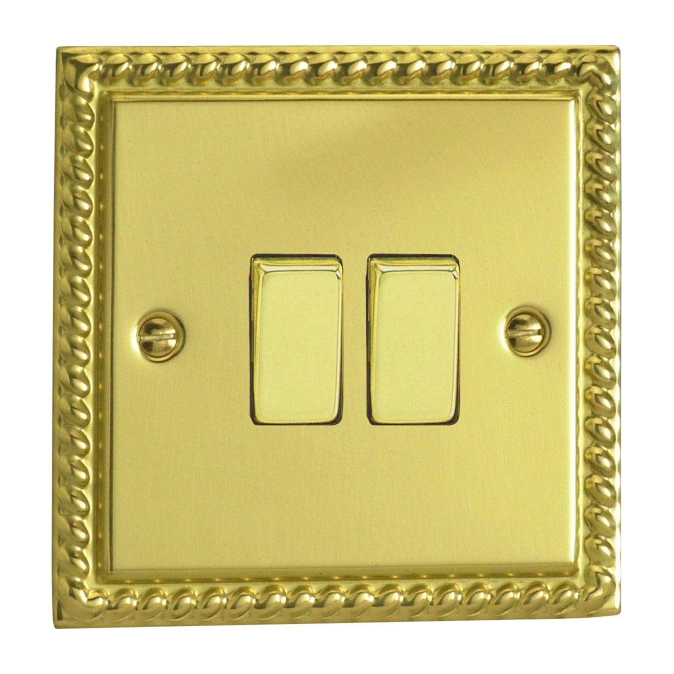 Varilight XG2D Rocker Switches Brass 2-Gang Georgian Brass,95x95x25mm