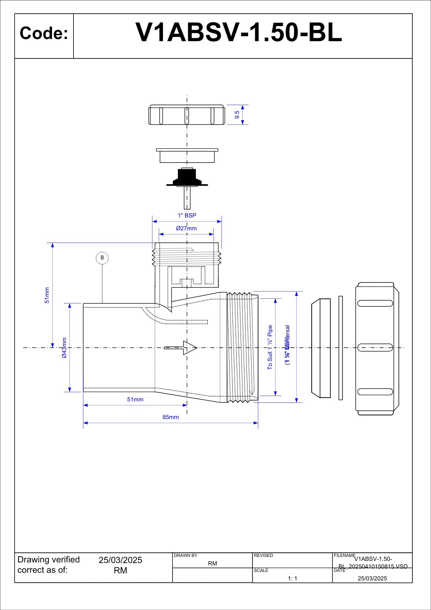 McAlpine 1 1/2" Anti Siphon Adaptor - Black