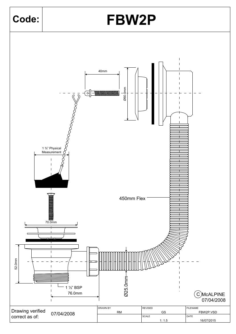 McAlpine Chrome Plated Combined Bath Waste and Overflow 1.5'' FBW2P