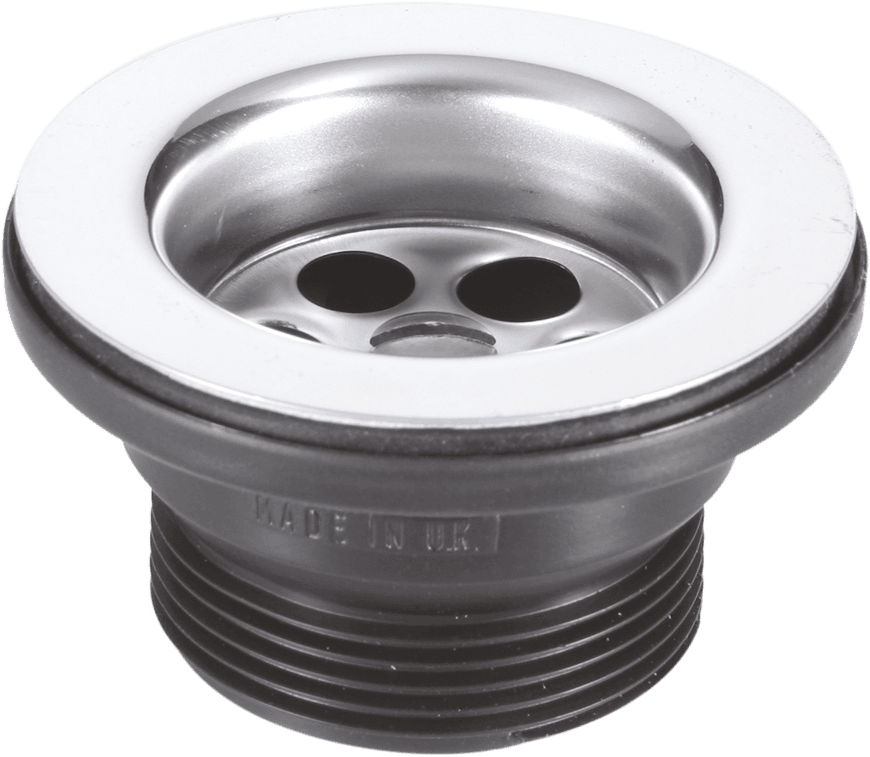 McAlpine BSW15PC 1½" Centre Pin Bath Waste: 70mm Stainless Steel Flange: Black PVC Plug