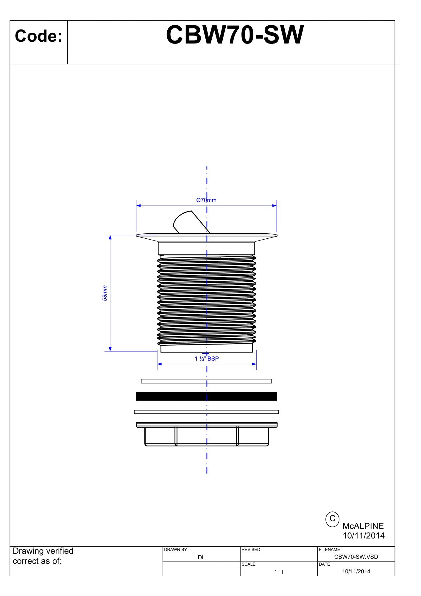 McAlpine 1.5" CP Brass Swivel Bath Waste-58mm Tail & 70mm Flange