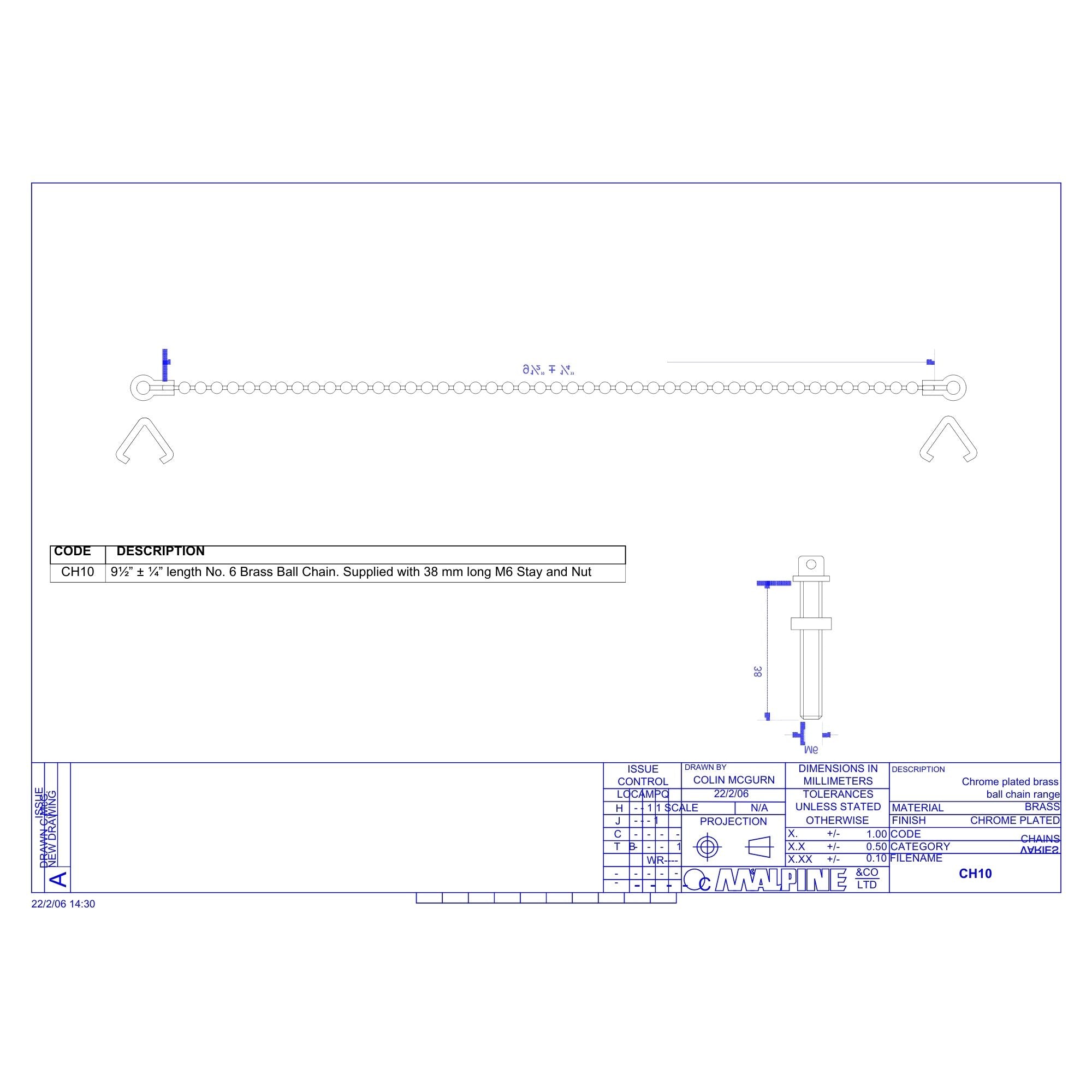 McAlpine 10" Chrome Plated Chain and 2 Triangles, Stay and Nut CH10