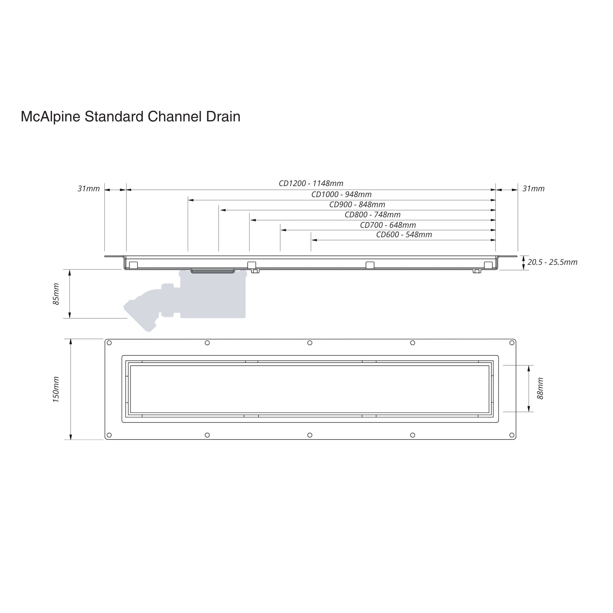 McAlpine 1000mm Channel Drain - Polished Cover Plate CD1000-P