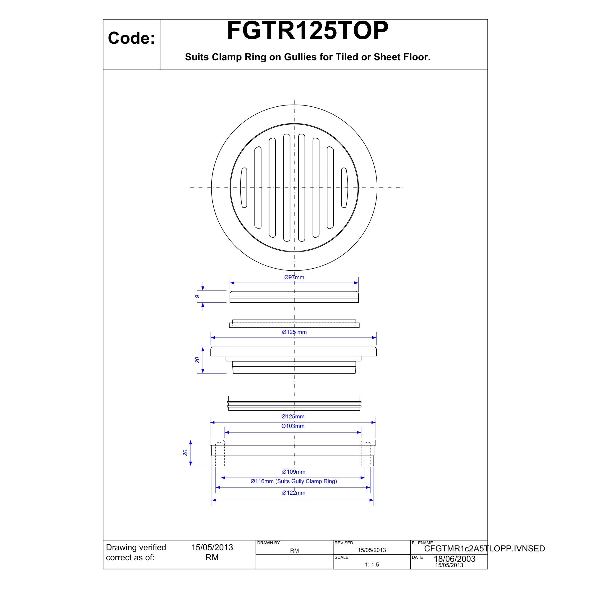 McAlpine 125mm Polished Stainless Steel Grating FGTR125TOP