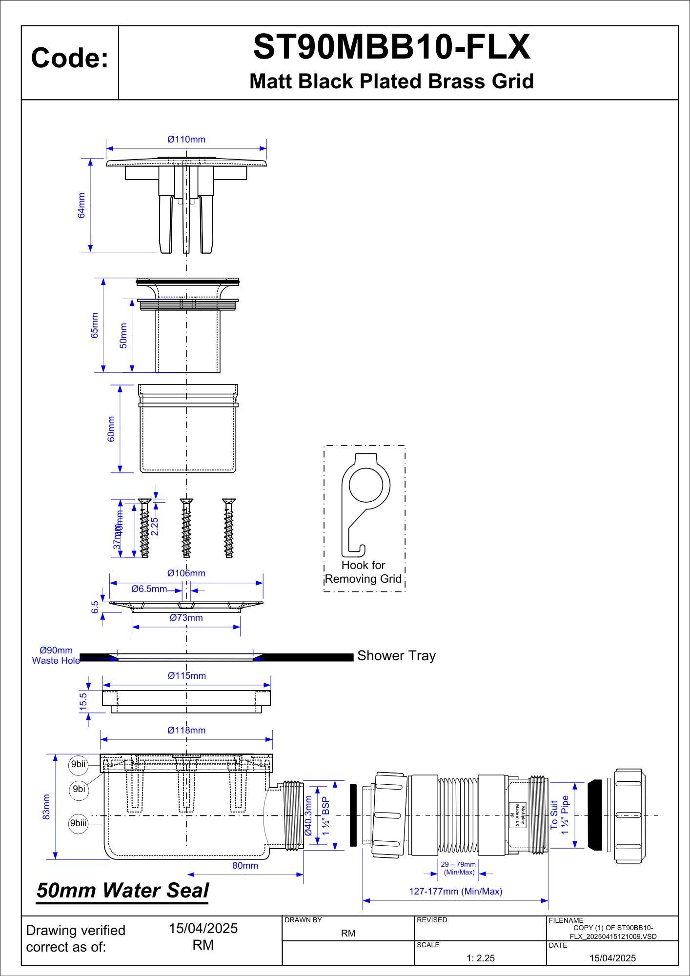 McAlpine 3 Pin Shower Trap + Flex Adaptor - Matt Black