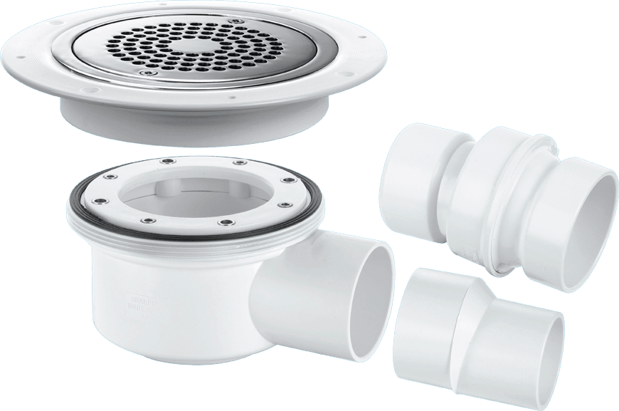 McAlpine TSG52-ANTI/LIG Two-Piece 50mm Water Seal Trapped Gully, Clamp Ring and Cover Plate, 2" Horizontal Outlet and 2" x 1½" Socket Reducer