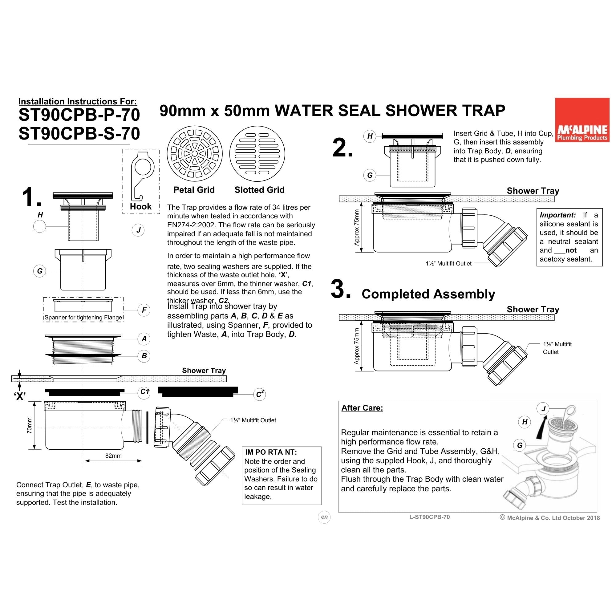 McAlpine ST90CB10-70 90mm Shallow Shower Trap - 70mm High