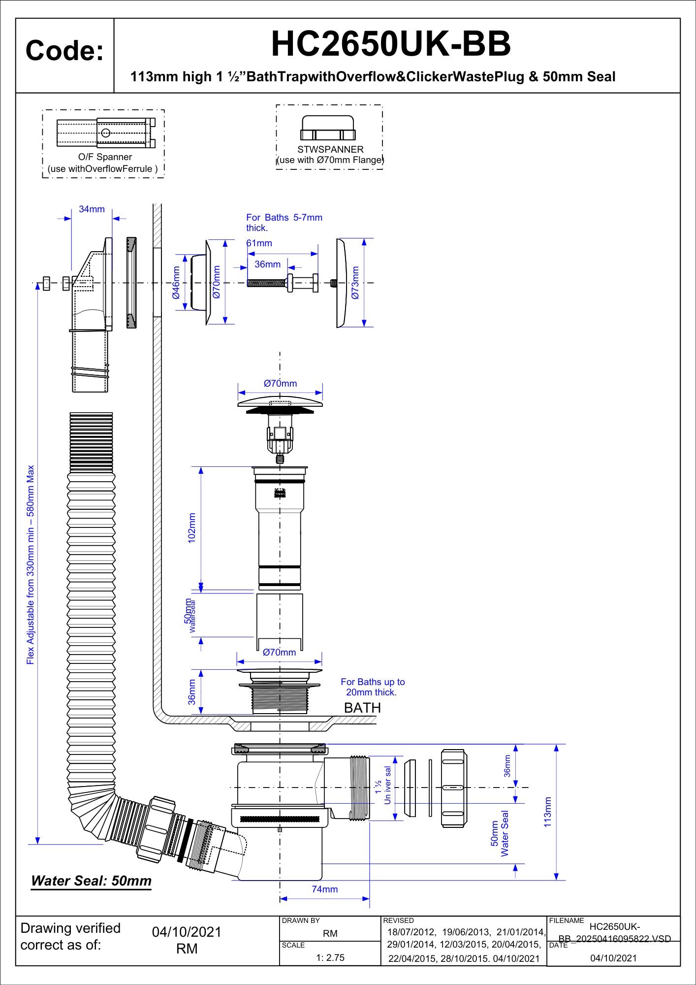McAlpine Bath Trap Waste & O/Flow - Brushed Brass