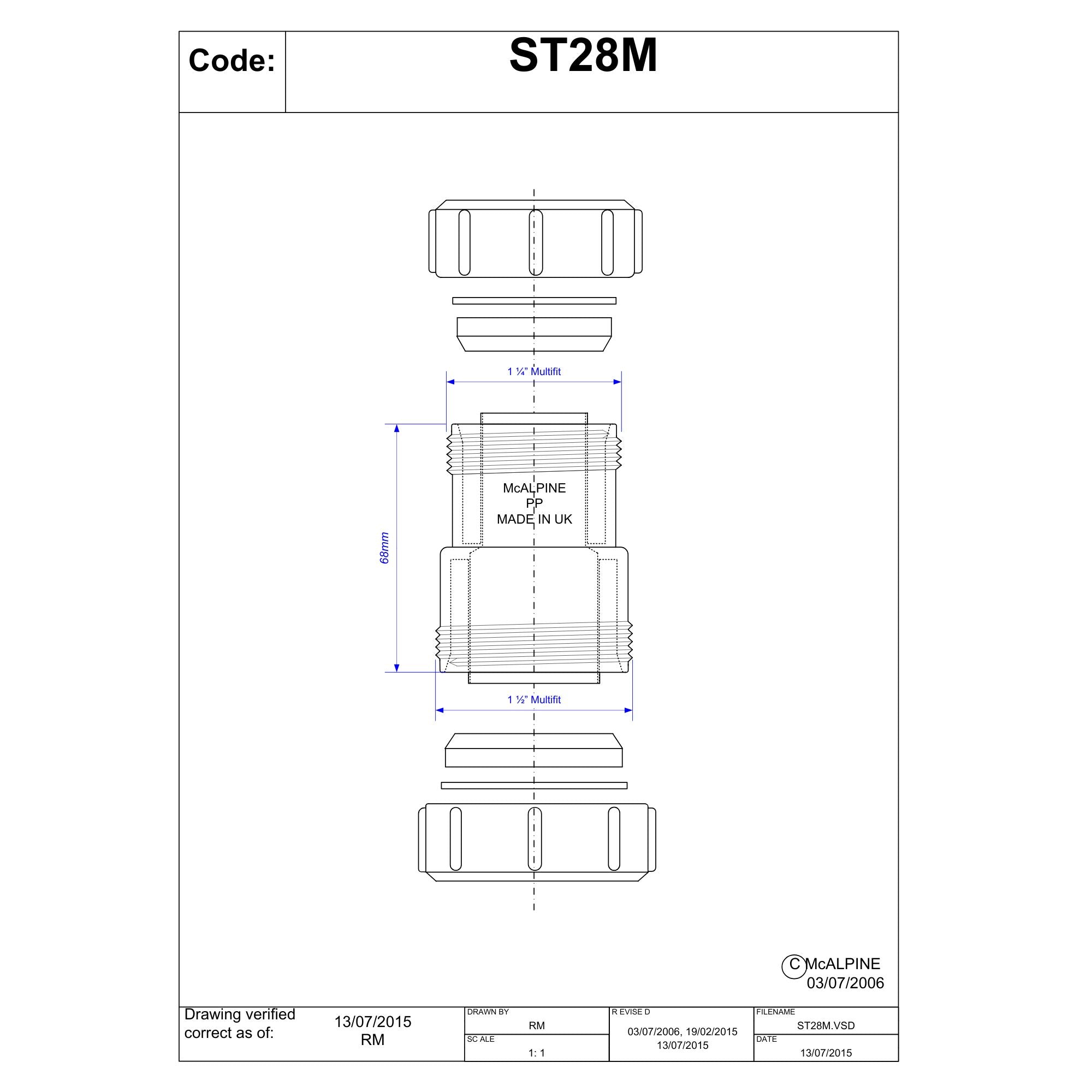McAlpine Black Multifit Straight Reducer 1.50" to 1.25" ST28M-BL