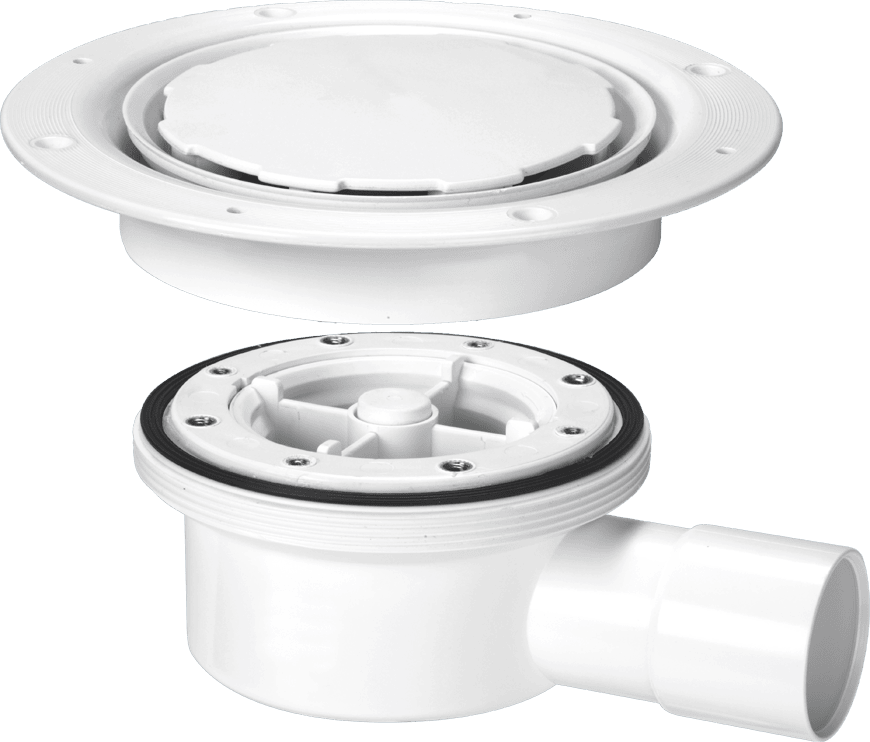 McAlpine VSG52WH-NSC Two-Piece Valve Shower Gully, White Plastic Clamp Ring and Cover Plate, 1½" Horizontal Outlet