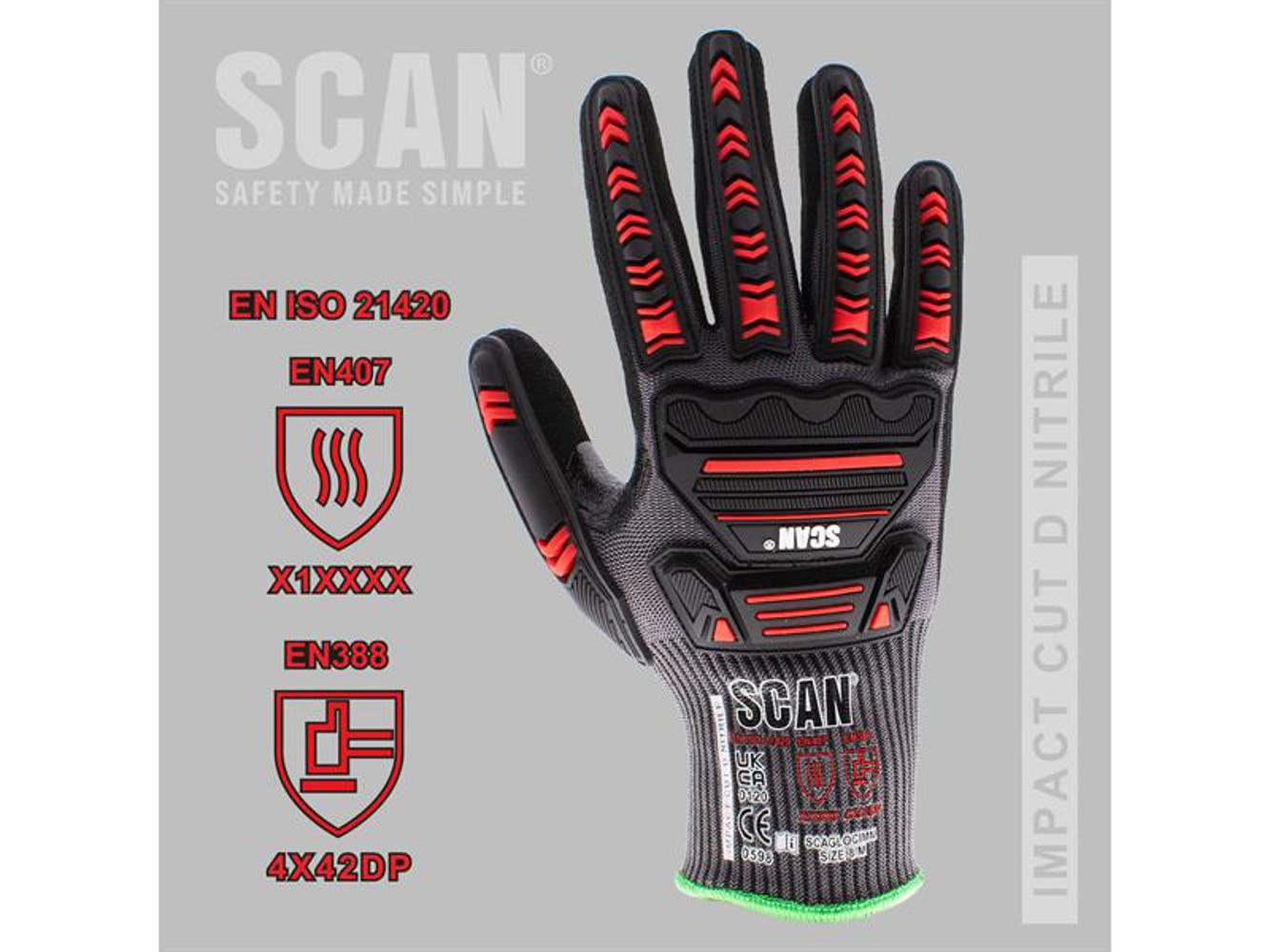 Scan Nitrile Palm Impact Cut D Gloves - Xl (Size 10)