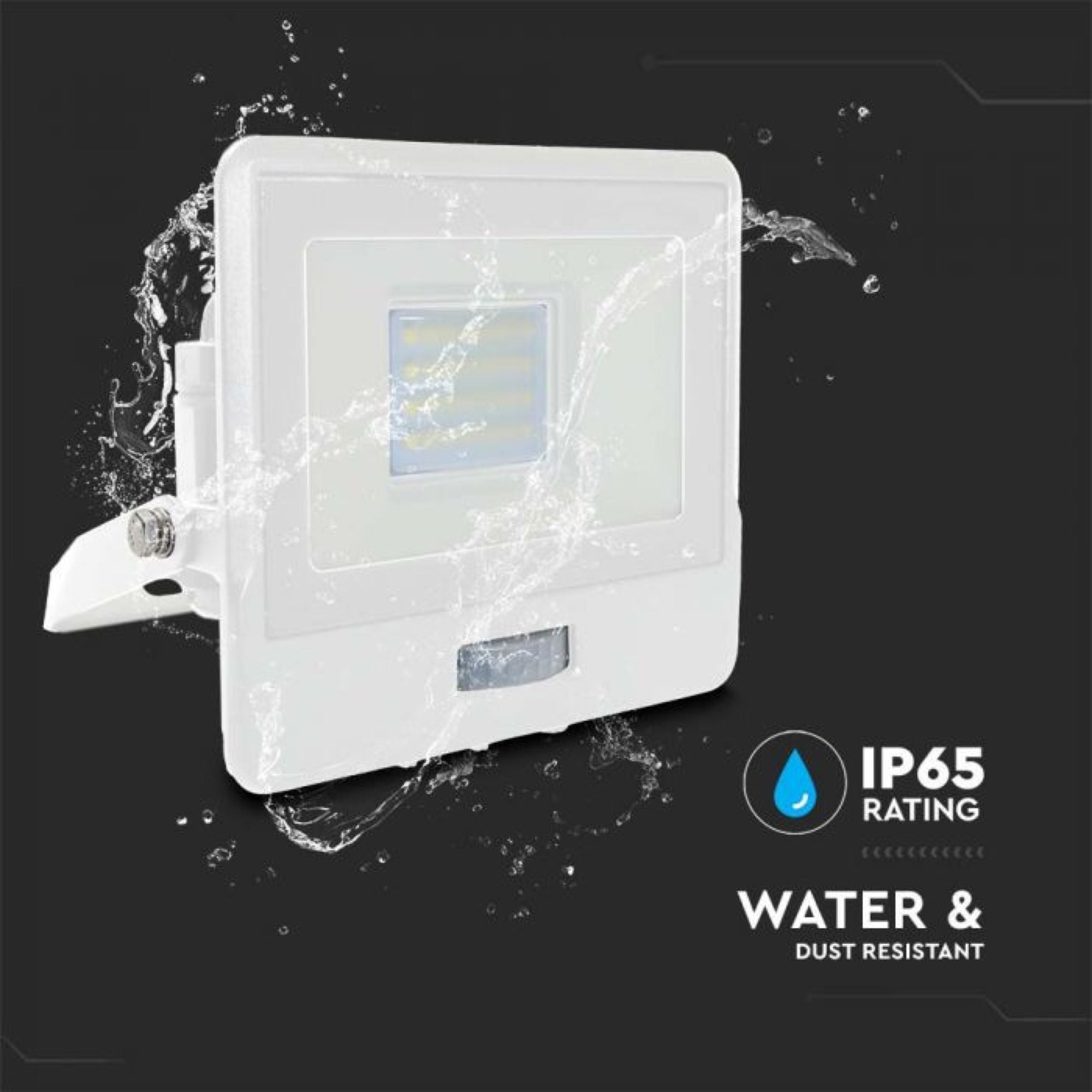 V-Tac Lumi Vt-128S 20W Pir Sensor Floodlight Samsung Chip 4000K Black Body