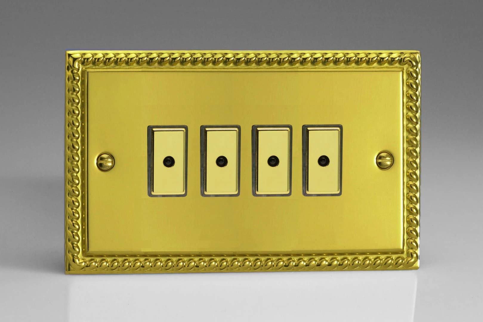 Varilight 4-Gang 1-Way Remote/Tactile Touch Control Master LED Dimmer 4 x 0-100W (Max 10 LEDs) Georgian Brass JGE104