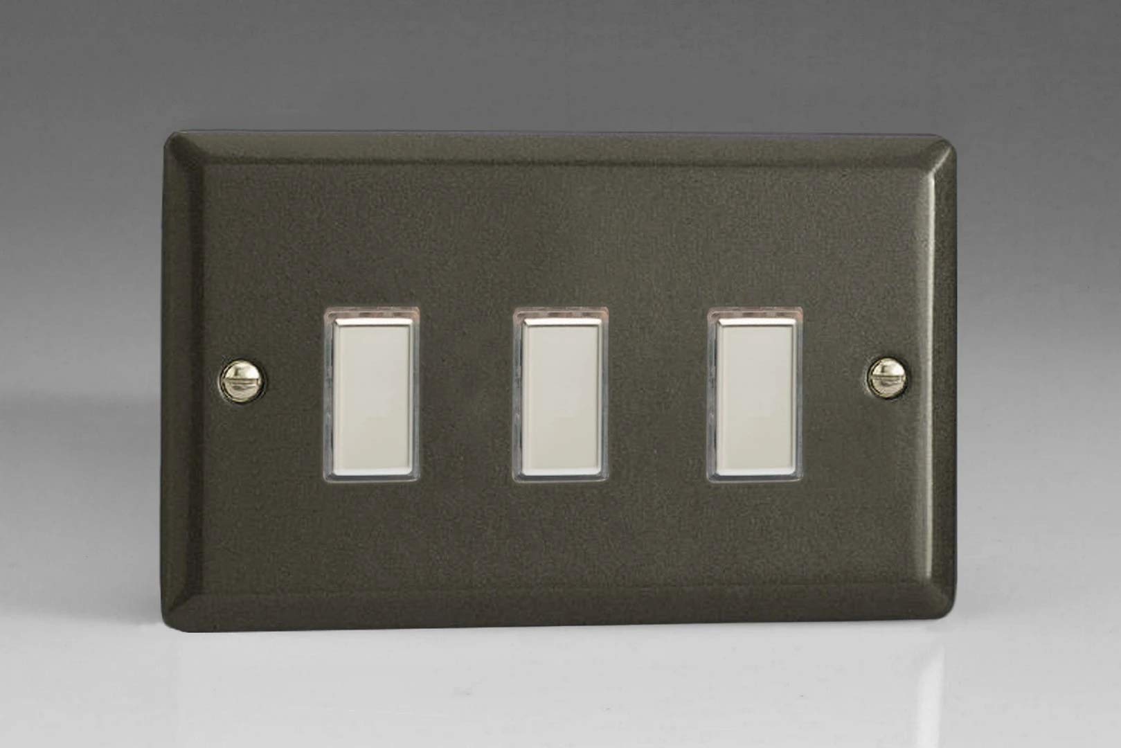Varilight 3-Gang Tactile Touch Control Dimming Light Switch Slave for use with Eclique2 Master on 2-Way Circuits (Twin Plate) Graphite JPES003