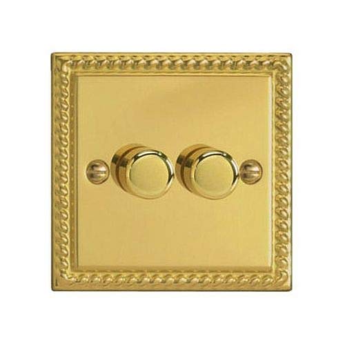 Varilight JGP252 Classic V-Pro Georgian Brass 2-Gang LED Trailing Edge Dimmer Switch 1 or 2 Way, White