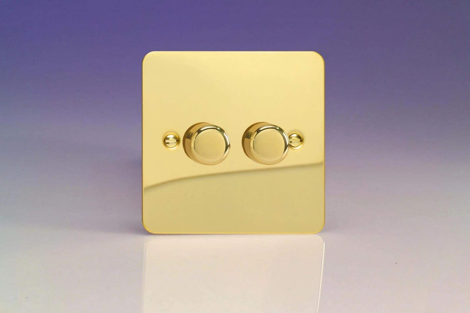 Varilight Ultraflat Polished Brass 2-Gang 2-Way Dimmer 1-10 Leds Light Switch
