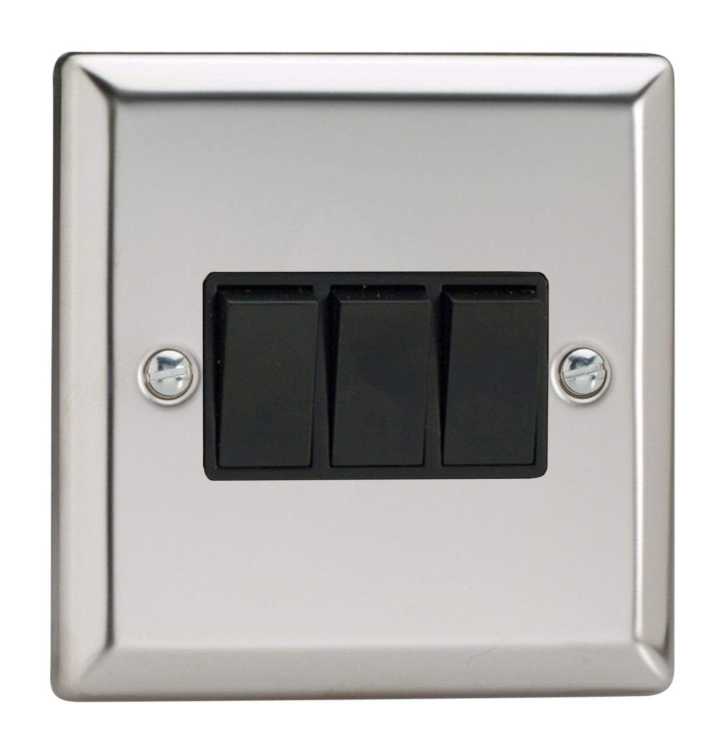 Varilight XC3B Rocker Switches 3 Gang Mirror Chrome Black
