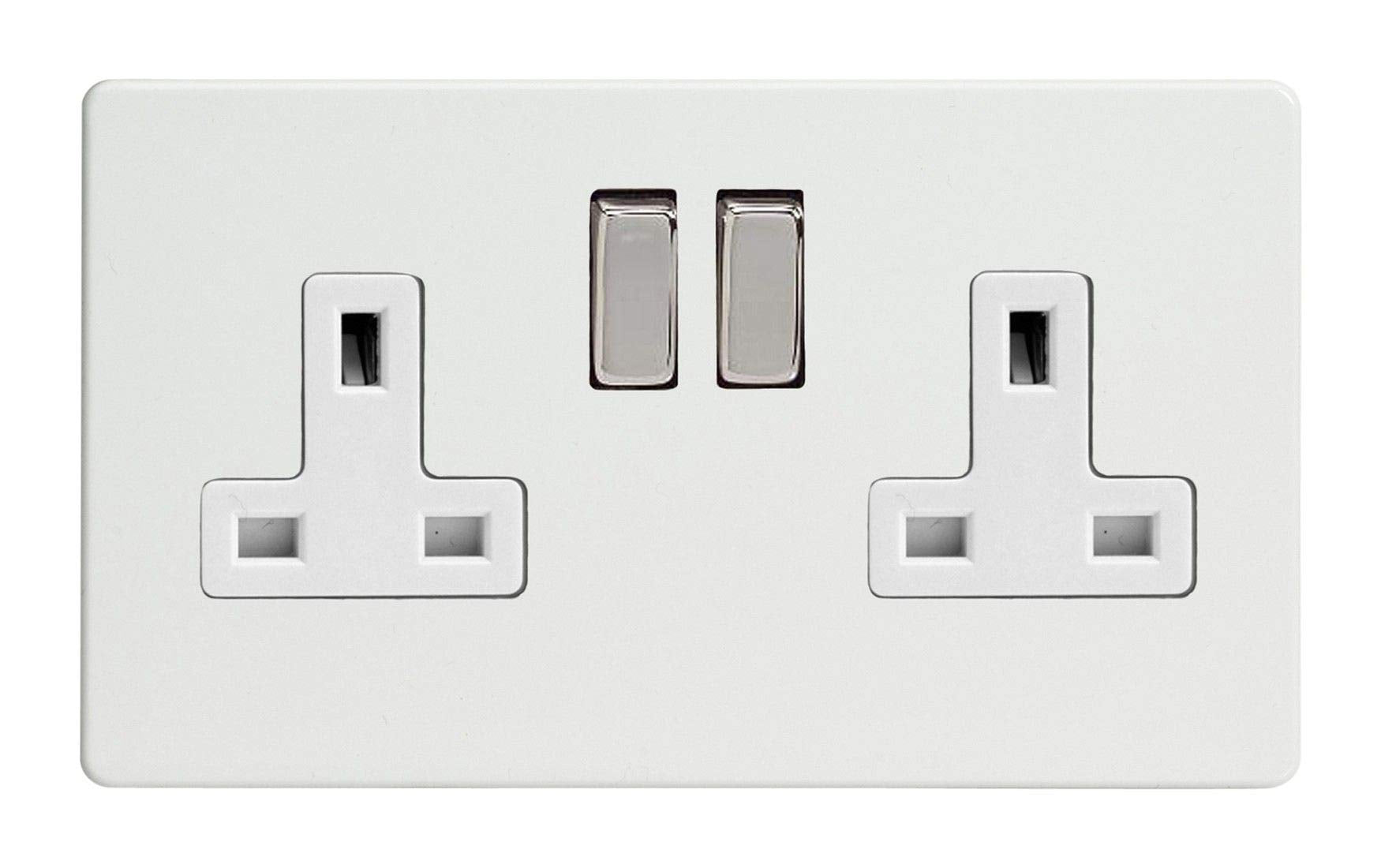 Varilight XDQ5WS 13A Socket Premium White Steel 2-Gang,86x147x32mm