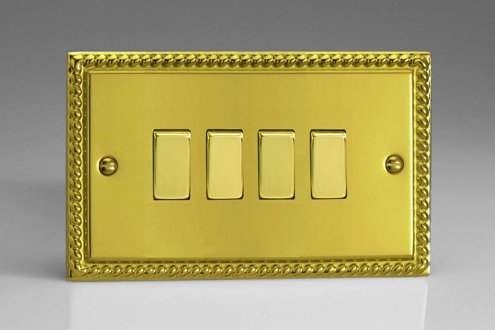 Varilight XG9D Rocker Switches 4 Gang Georgian Brass Brass