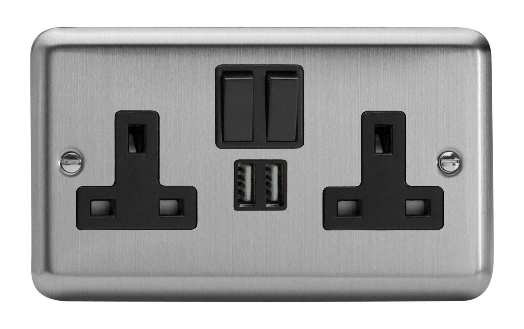 Varilight XS5U2SB 13A Socket 2-Gang With USB Black
