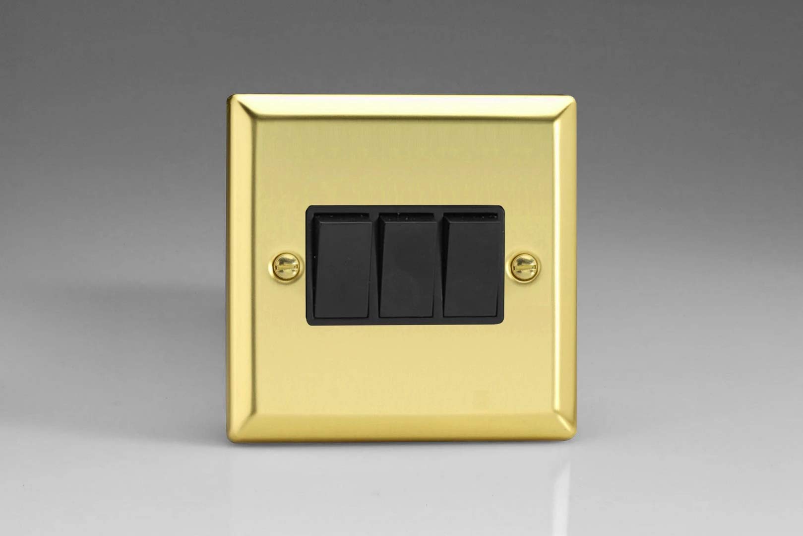 Varilight XV3B Rocker Switches Black 3 Gang Victorian Brass