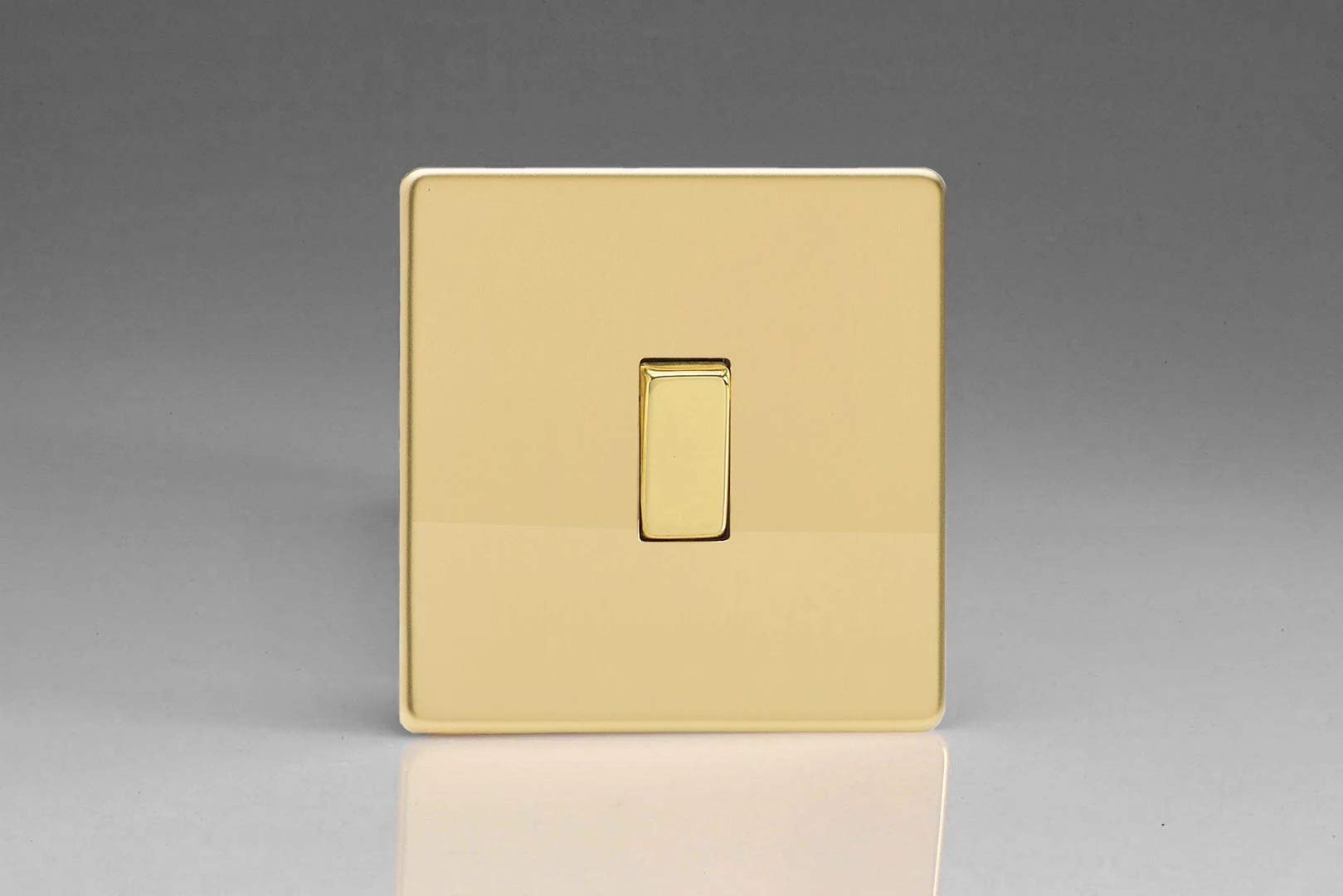 Varilight Flat Plate Screwless Polished Brass 1-Gang Light Switch XDV1S