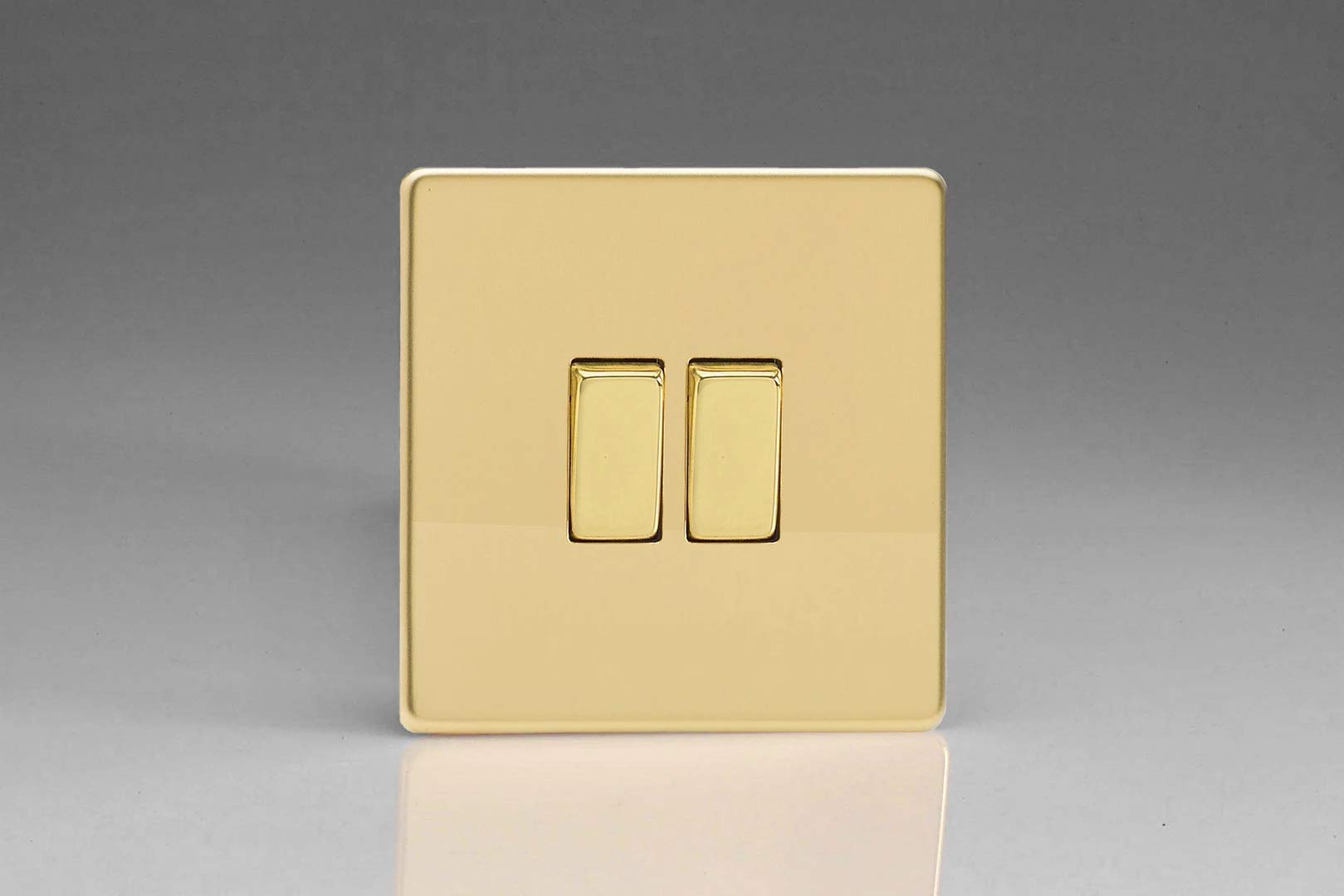 Varilight Flat Plate Screwless Polished Brass 2-Gang Light Switch XDV2S