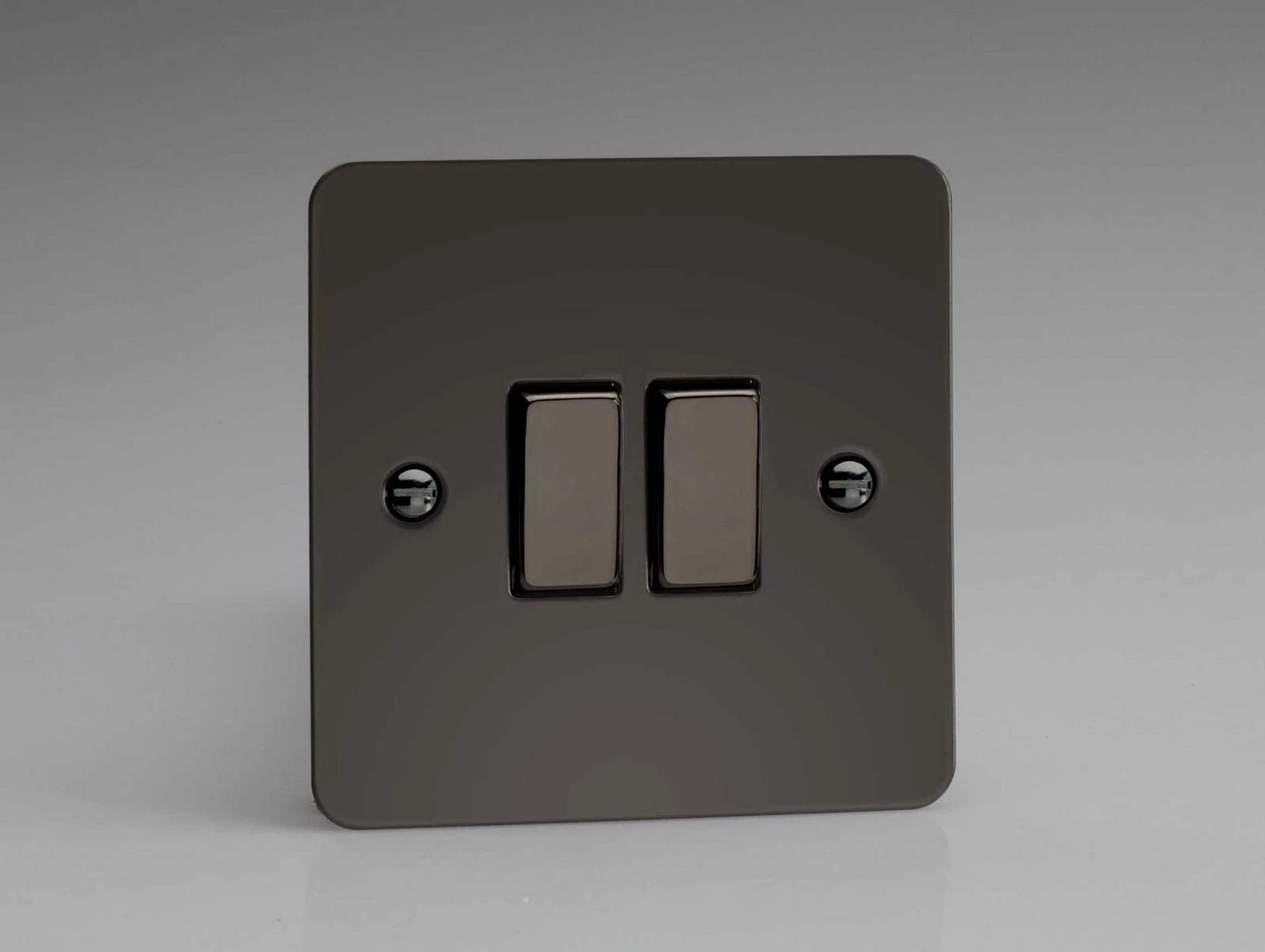 Varilight Ultra Flat Plate Iridium Black 2-Gang Light Switch XFi2D